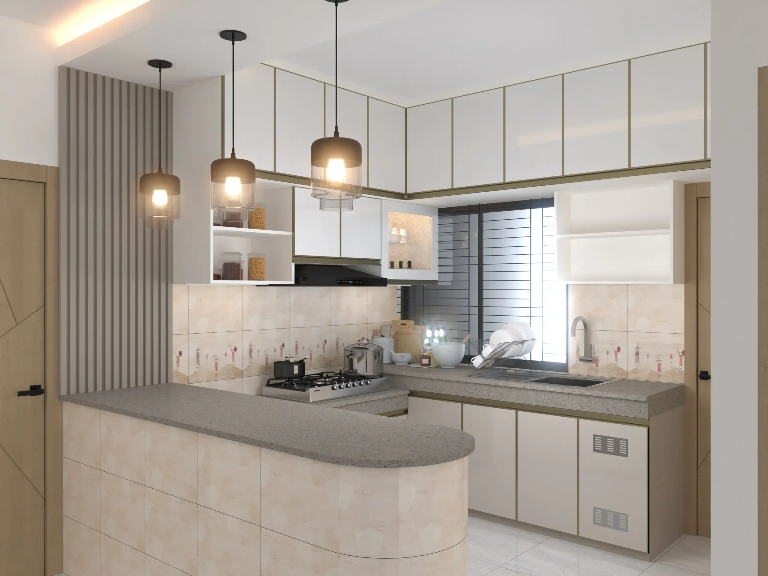 - Open shelving for easy access and visual warmth