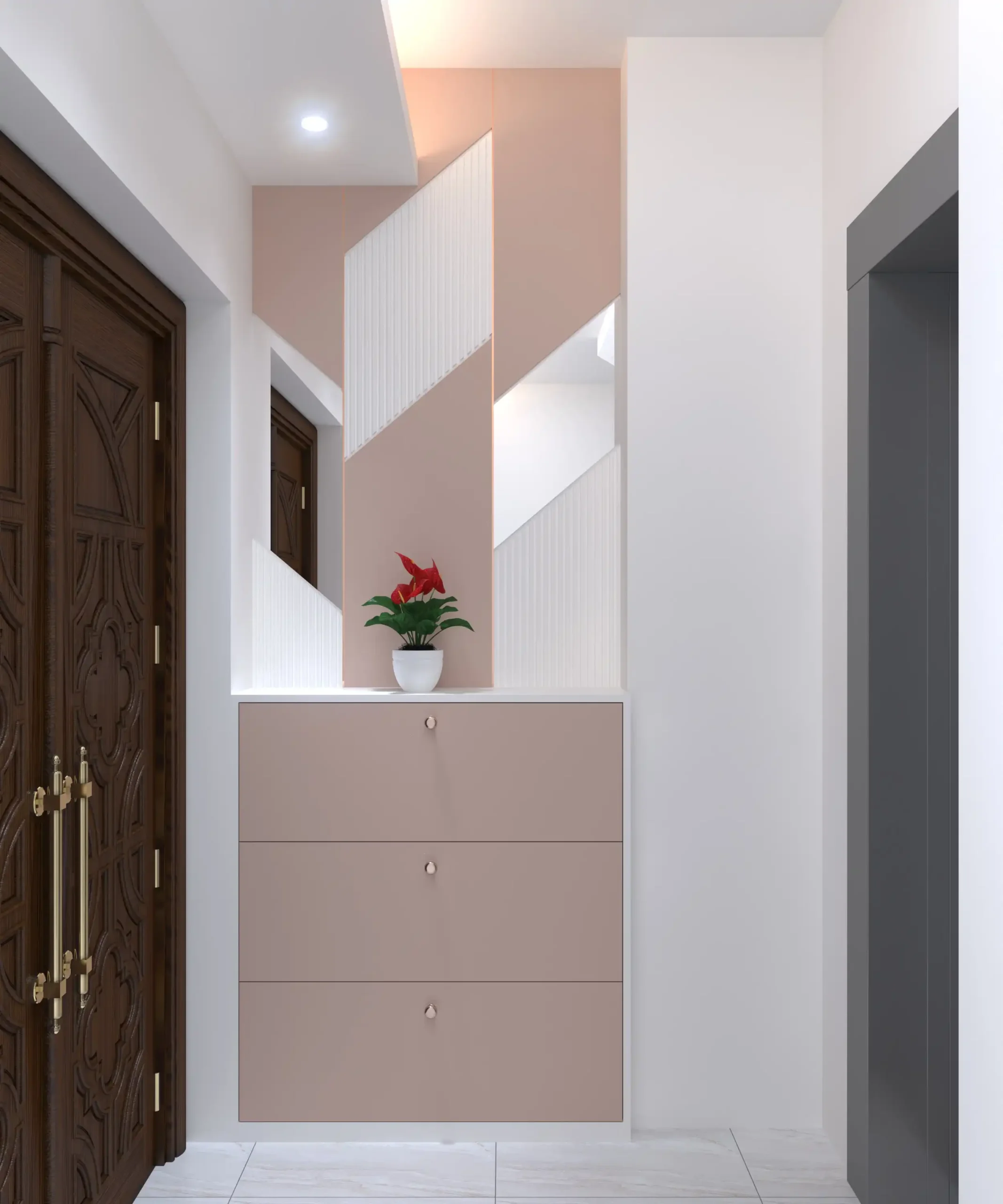 What makes this project truly special is its embrace of Tangail’s cultural identity. From the use of traditional weaving patterns in upholstery to the incorporation of local pottery and artwork, every detail tells a story. Even the foyer features a mural inspired by the Jamuna River, adding a poetic welcome to the home.
