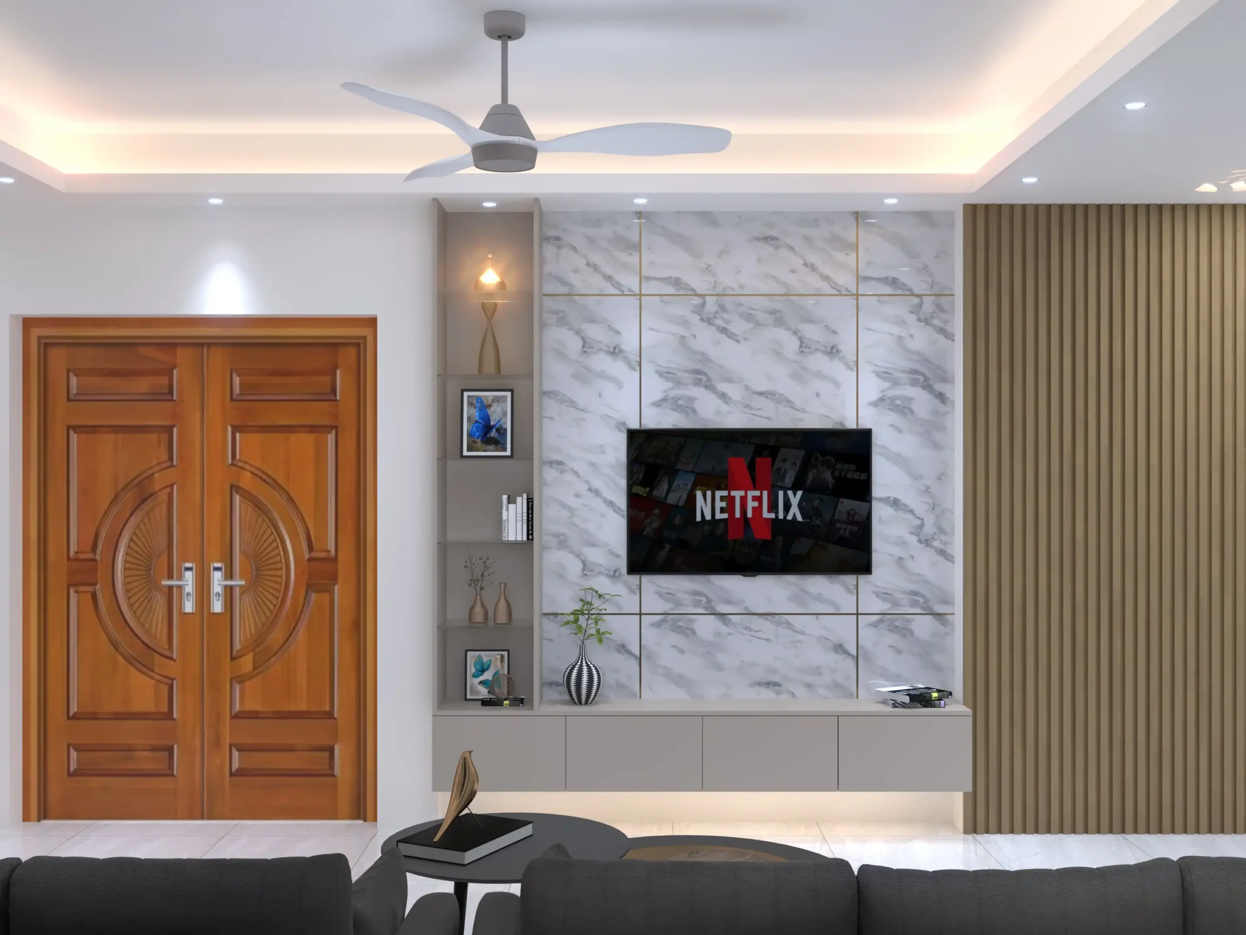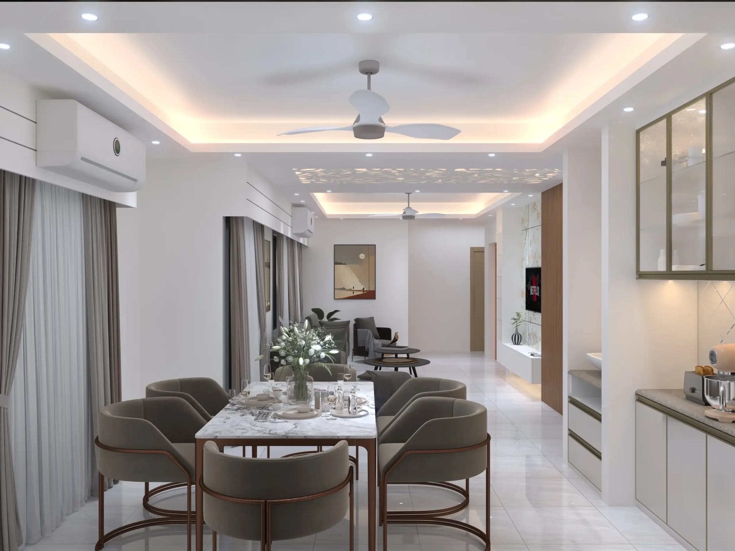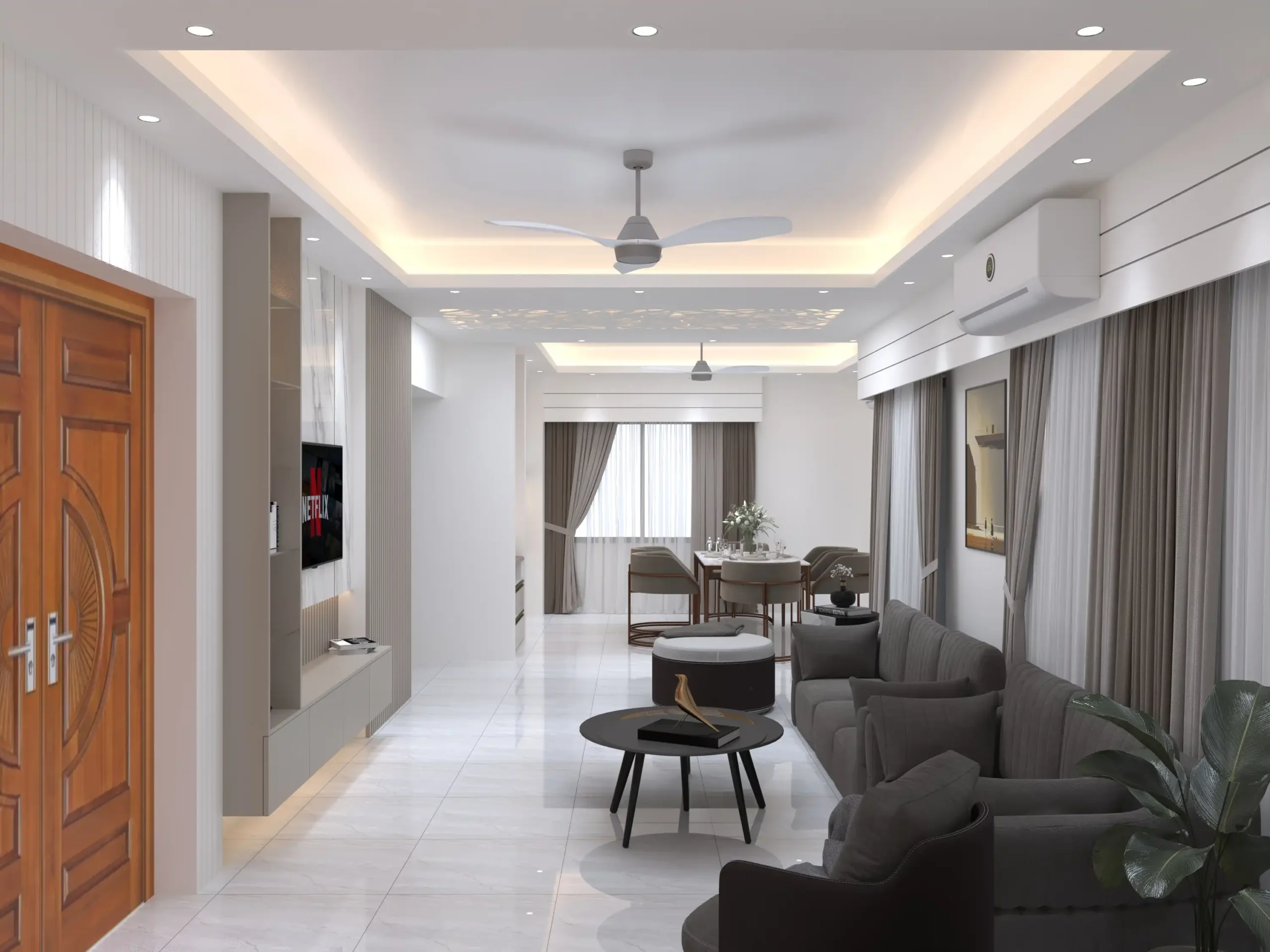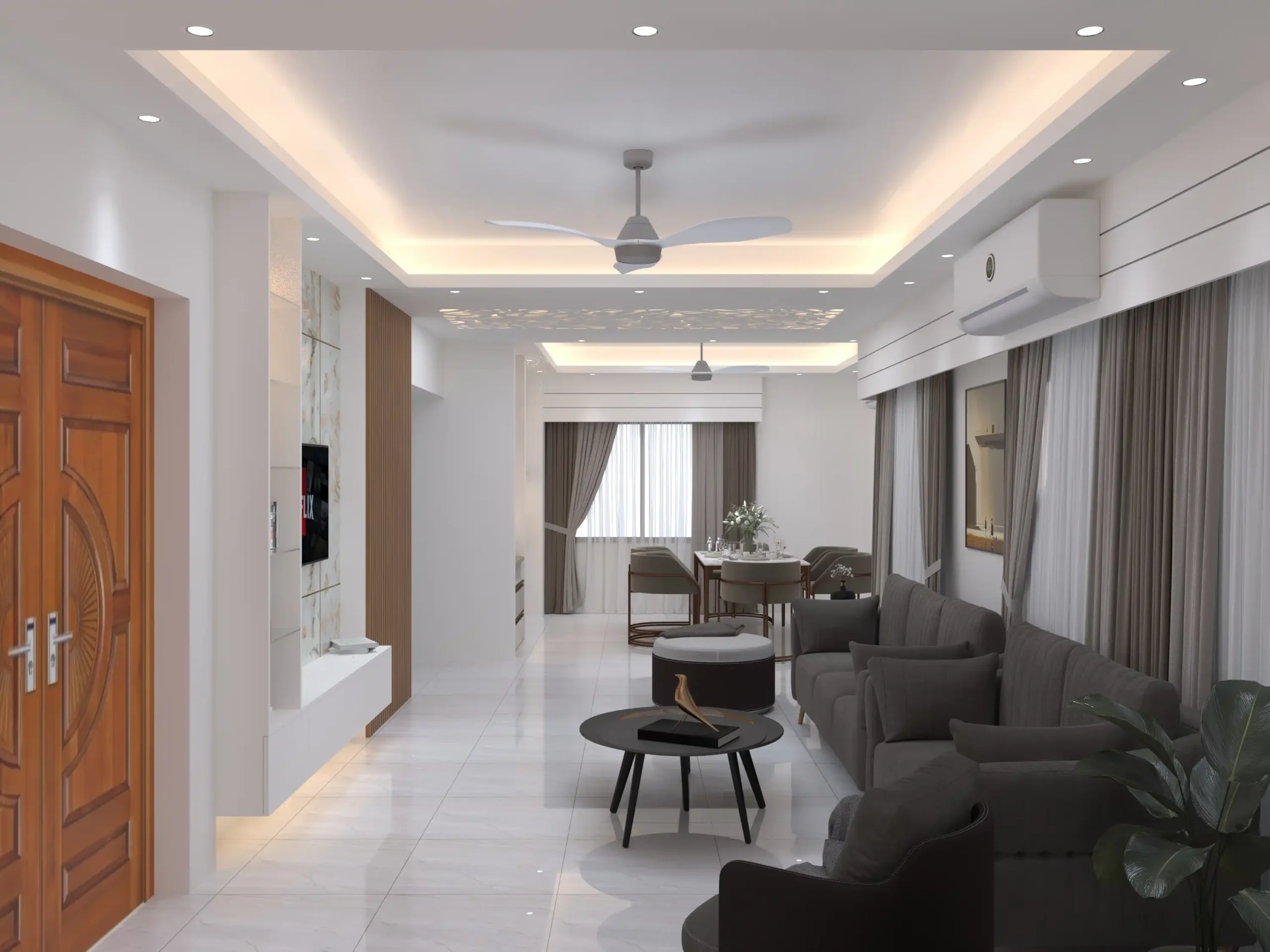 - Scope: Full interior design—living room, bedrooms, kitchen, dining, and foyer