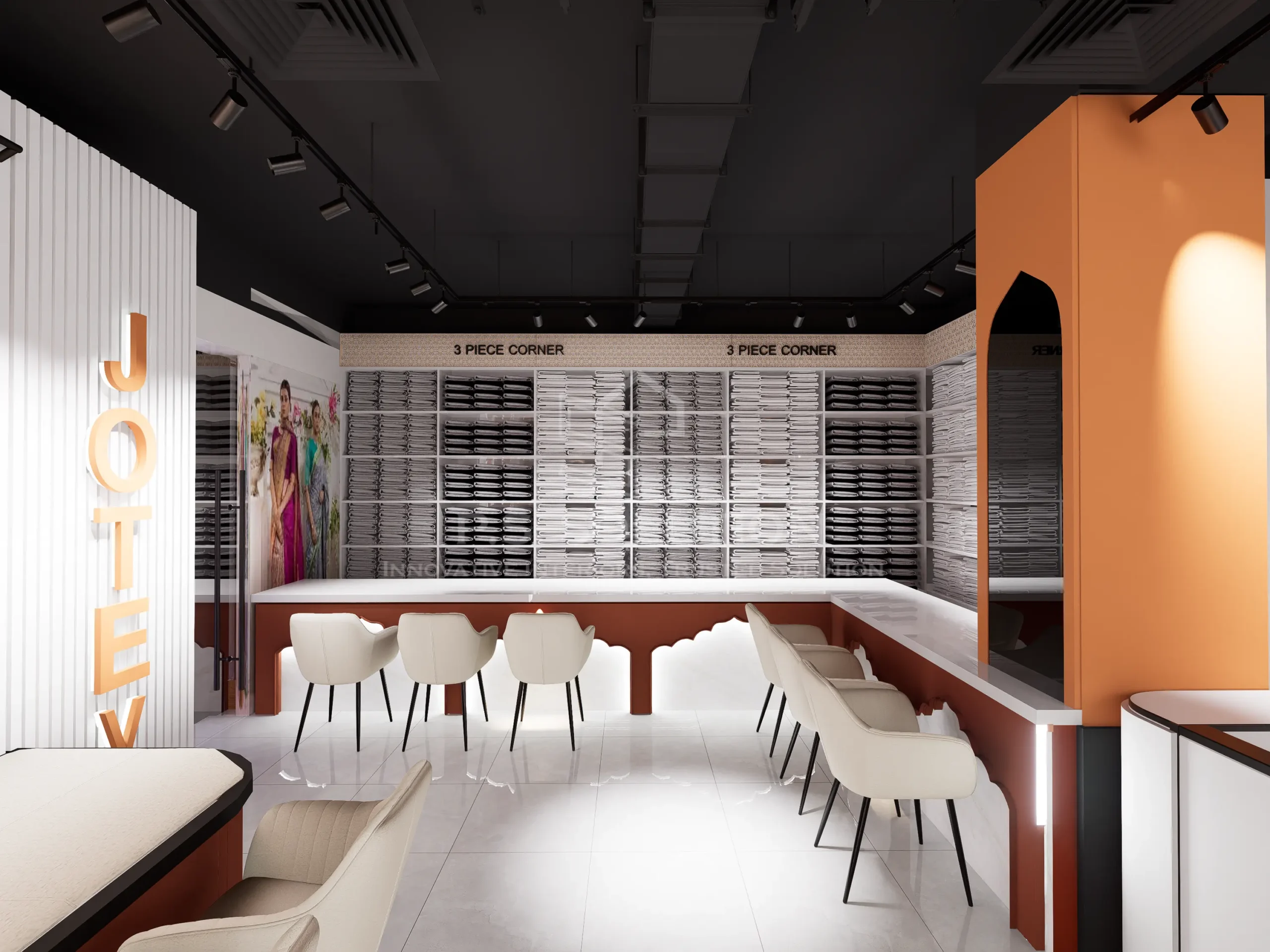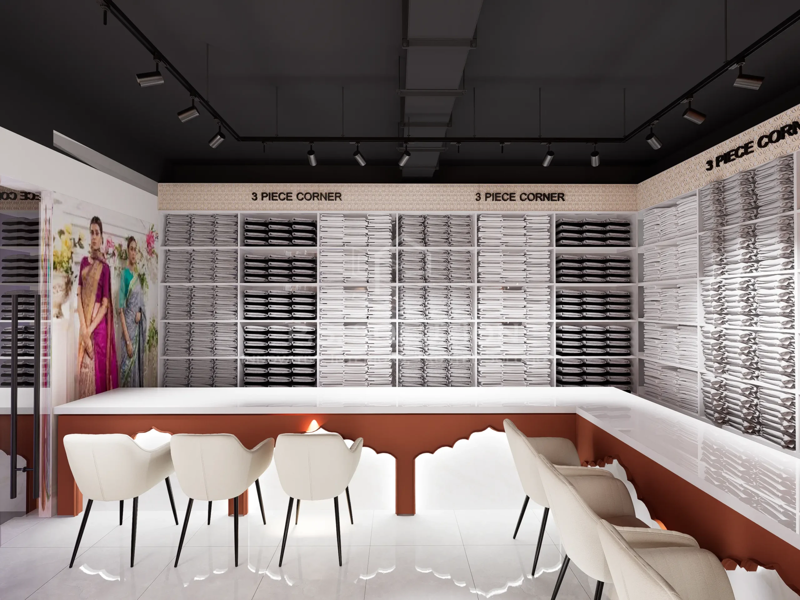 The goal was to create a space that reflects the timeless beauty of sarees while offering a modern, intuitive retail journey. Every element—from layout to lighting—was chosen to enhance both product visibility and customer experience.