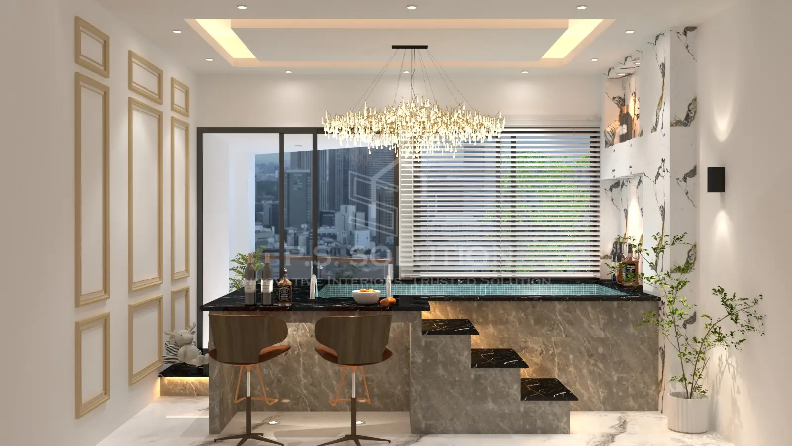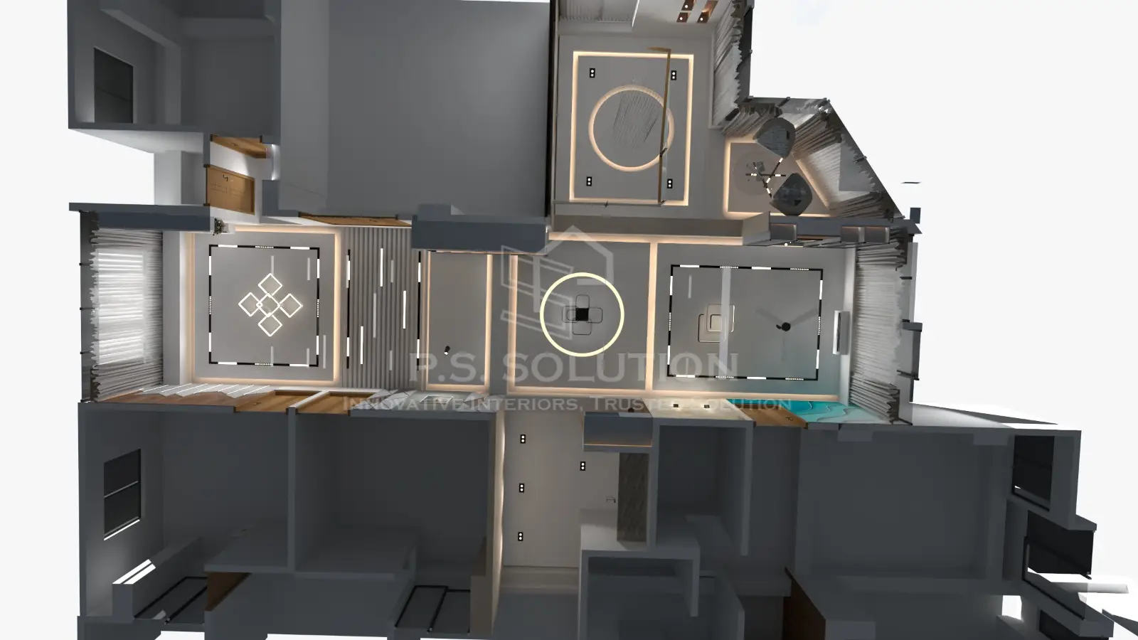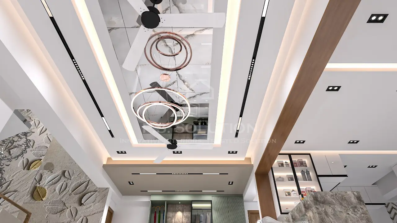 • Lighting Design: Strategic placement of spotlights and T5 tubes to highlight architectural features and create mood zones.