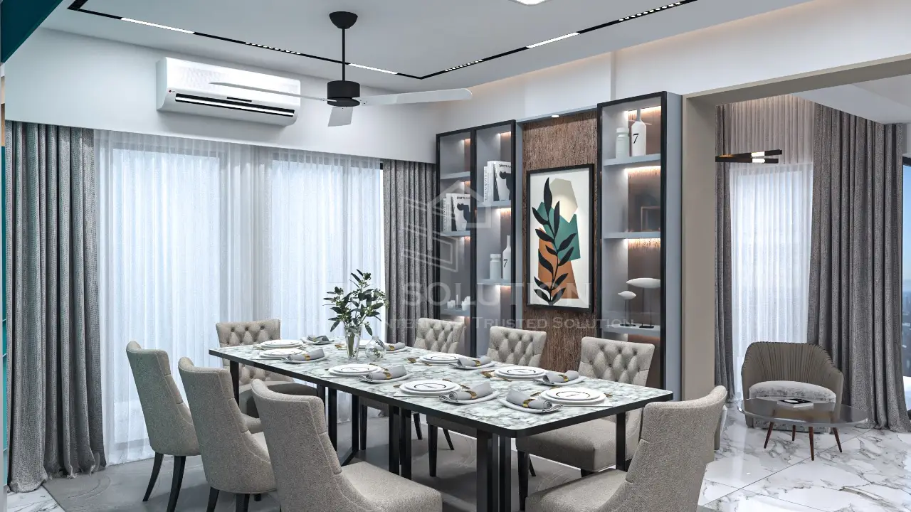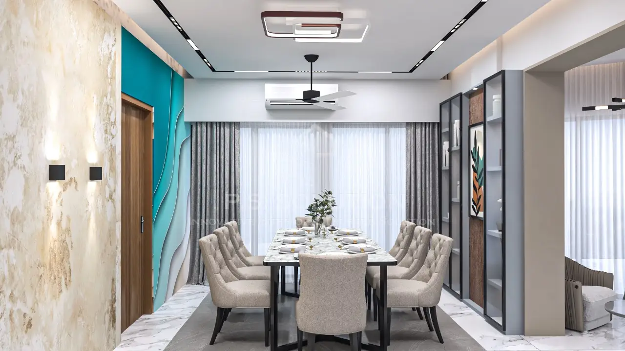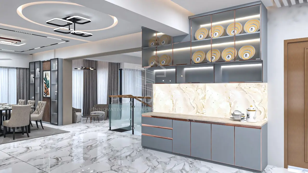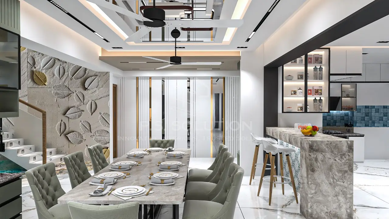 • Lighting Design: Strategic placement of spotlights and T5 tubes to highlight architectural features and create mood zones.