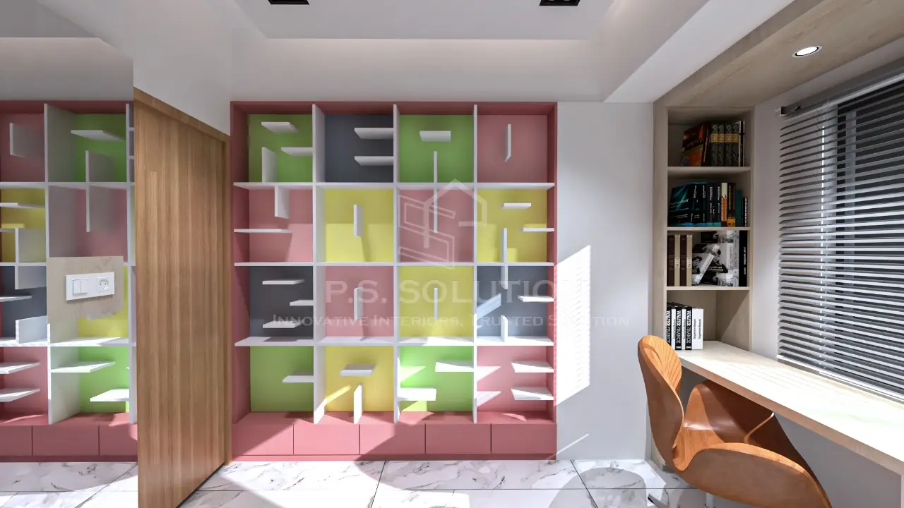 • Child’s Bedroom: A playful yet organized space with vibrant accents and ergonomic design.
