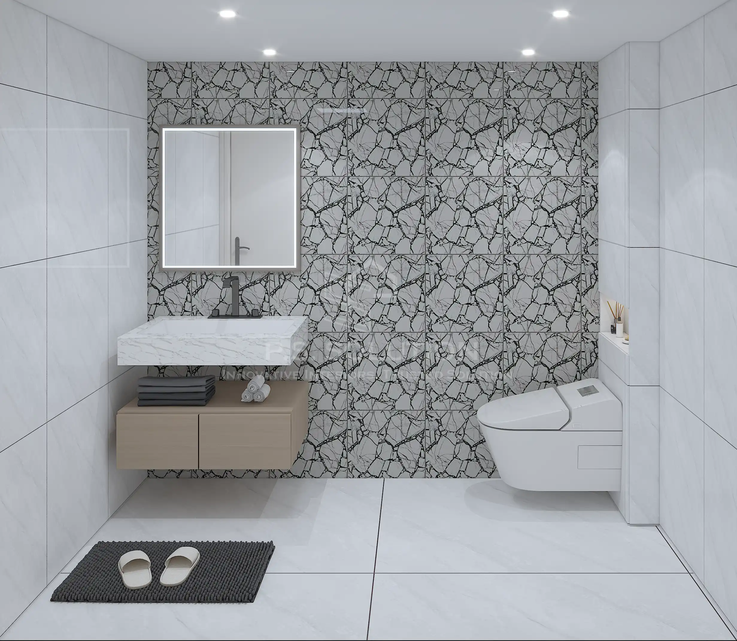 - Bathrooms: Spa-inspired spaces with rainfall showers, floating vanities, and mosaic tile accents.