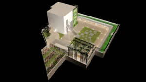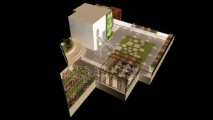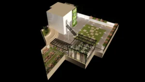 - Type: Residential rooftop garden with a multipurpose room